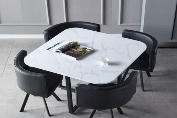 Table repas Manon céramique marbre blanc & pied gold 90×200