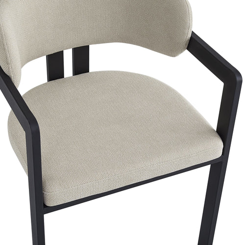 Son piètement metal noir souligne une silhouette élégante et intemporelle, tandis que son assise en grain de sable doux invite à la détente.